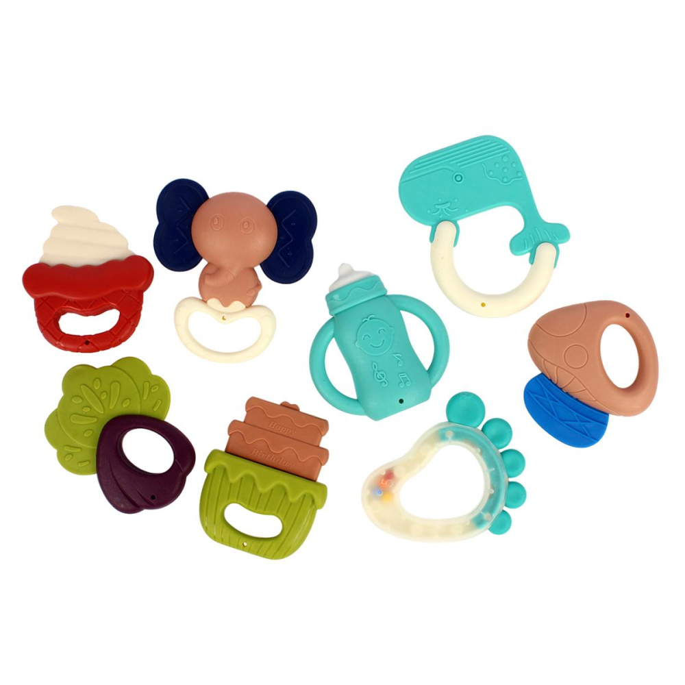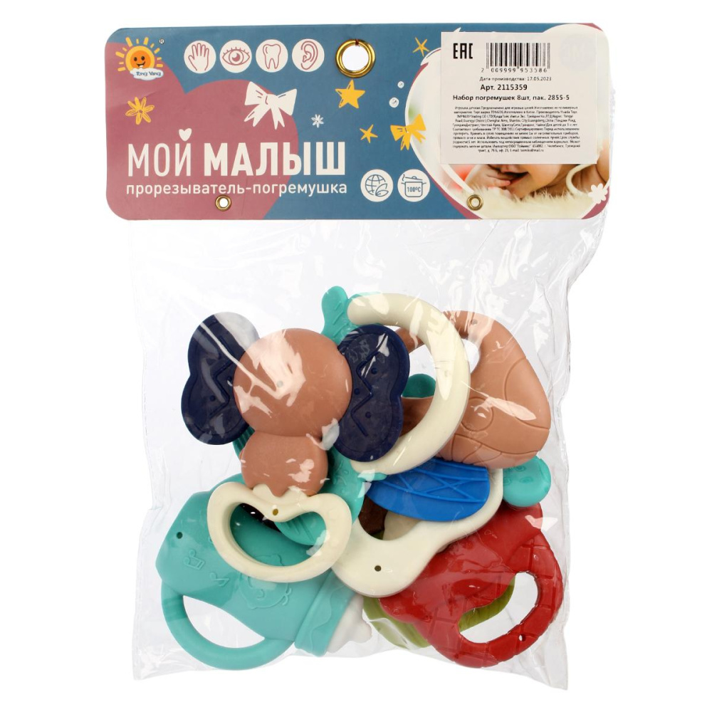 Размер упаковки: 7,8 * 2,5 * 8,5 смПогремушки - игрушки для малышей до года. Набор с грызунками - прорезывателями для зубов. Отличная развивашка для вашего малыша 0+.