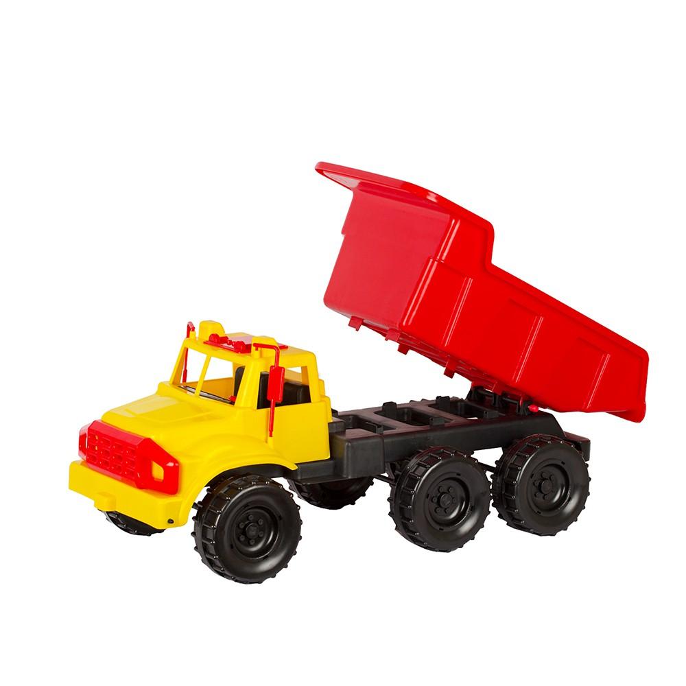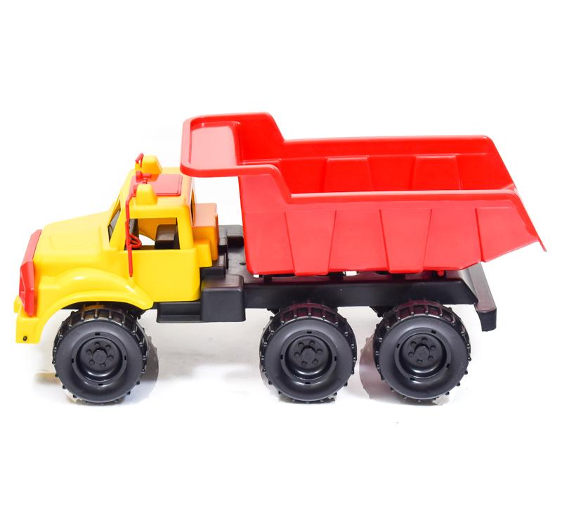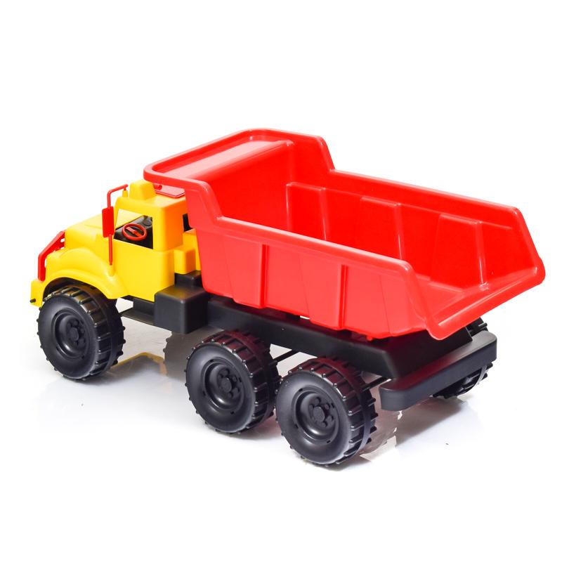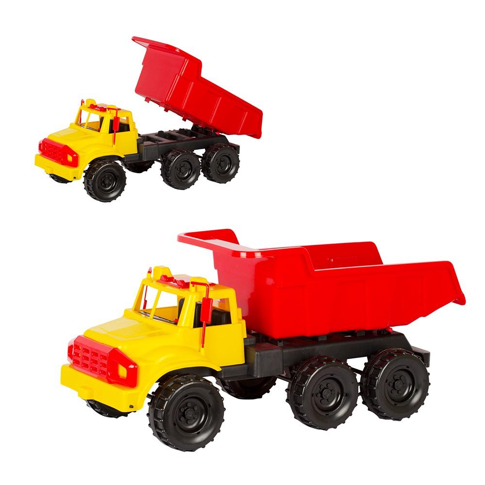 Игрушка Автомобиль-самосвал «Зубр» – пластмассовая игрушка, которую можно использовать как на улице, так и в доме. Машина большого размера с внушительным кузовом, в котором можно перевозить различные игрушки, песок. Кузов машины откидывается, как у настоящего самосвала. Машина оснащена 3 осями (3 пары колес)
