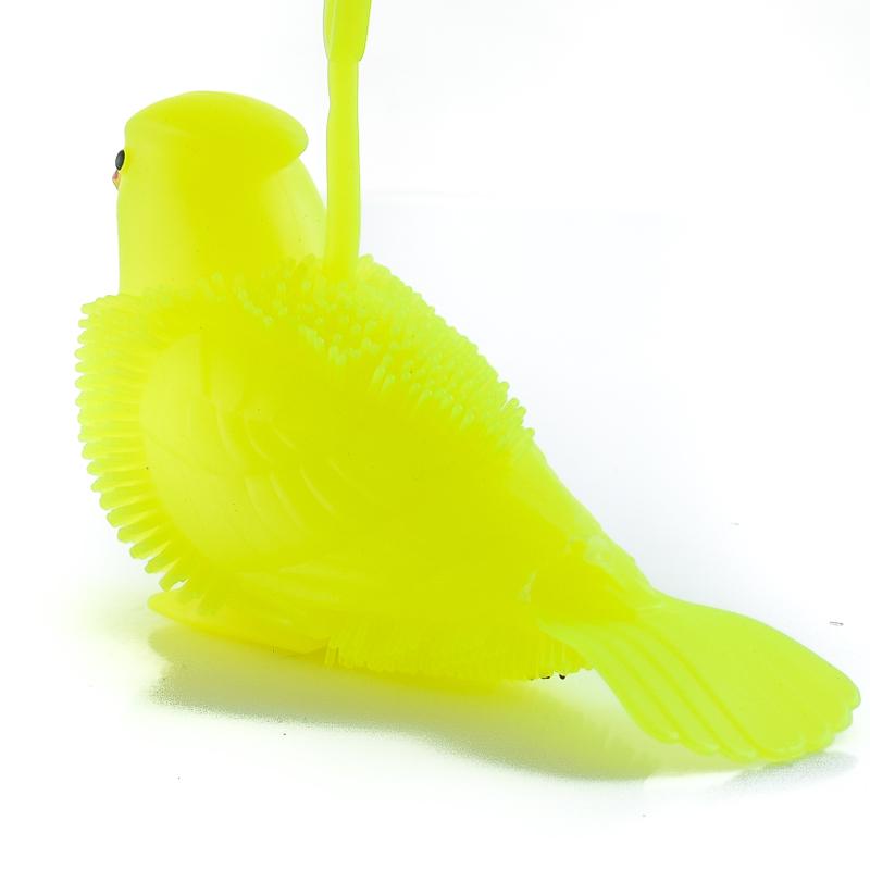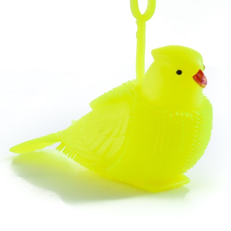 Мякиш в форме небольшой птички – будет интересным подарком. Игрушка начинает светиться от несильного удара об поверхность. Мякиш имеет крепление в виде небольшого кольца, при желании его можно повесить в любое место.Игрушка не имеет острых углов, и поэтому безопасна для ребёнка.