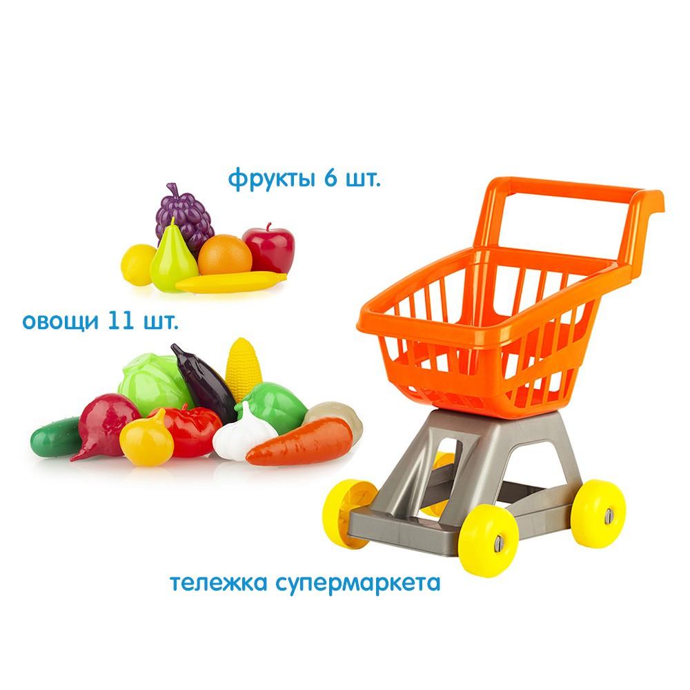 Яркая тележка с набором фруктов и овощей, это отличная возможность в игровой форме познакомиться с фруктами и овощами, изучая название, форму и их цвет. Игровой набор позволит ребенку совершить фантазийный поход в супермаркет и разыграть множество увлекательных сюжетов. Игра развивает в ребенке трудолюбие, ответственность, сюжетно-ролевое мышление, воображение.