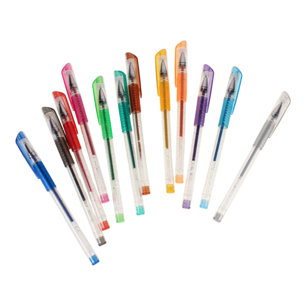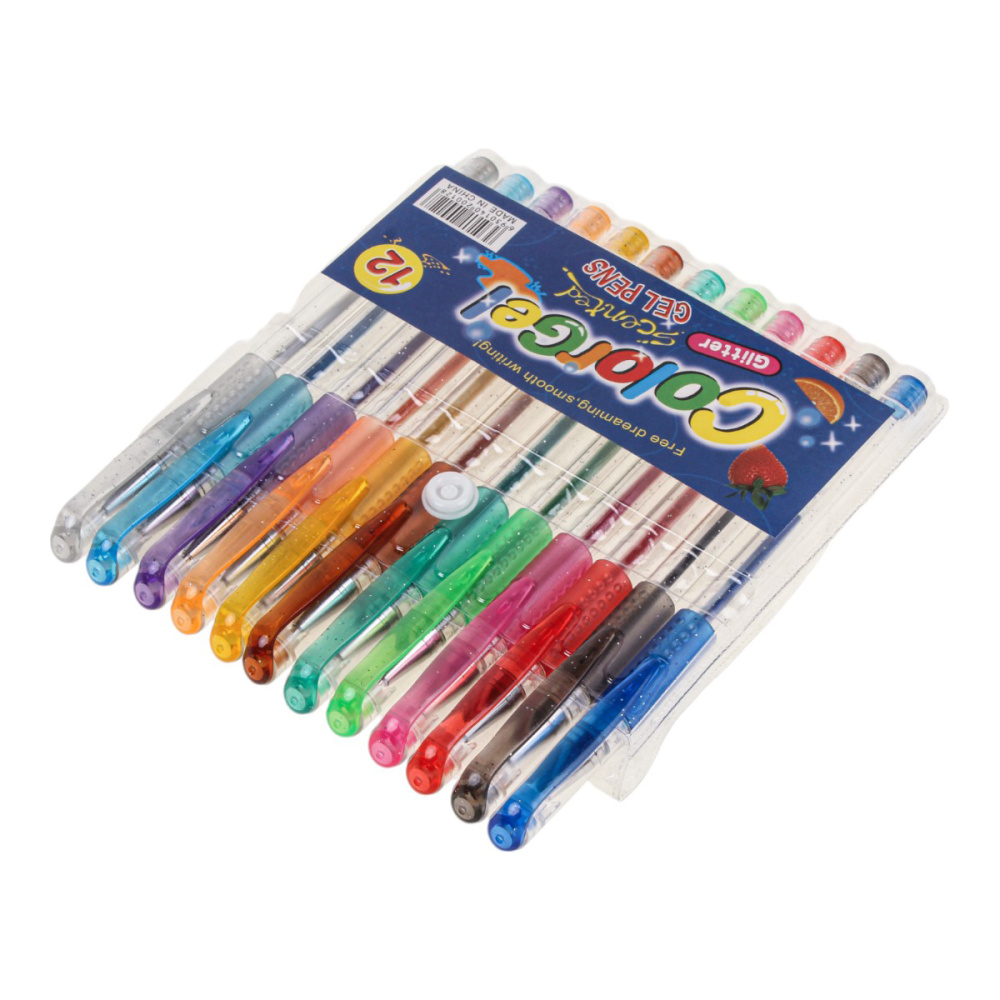 Набор включает гелевые ручки из 12 различных цветов.