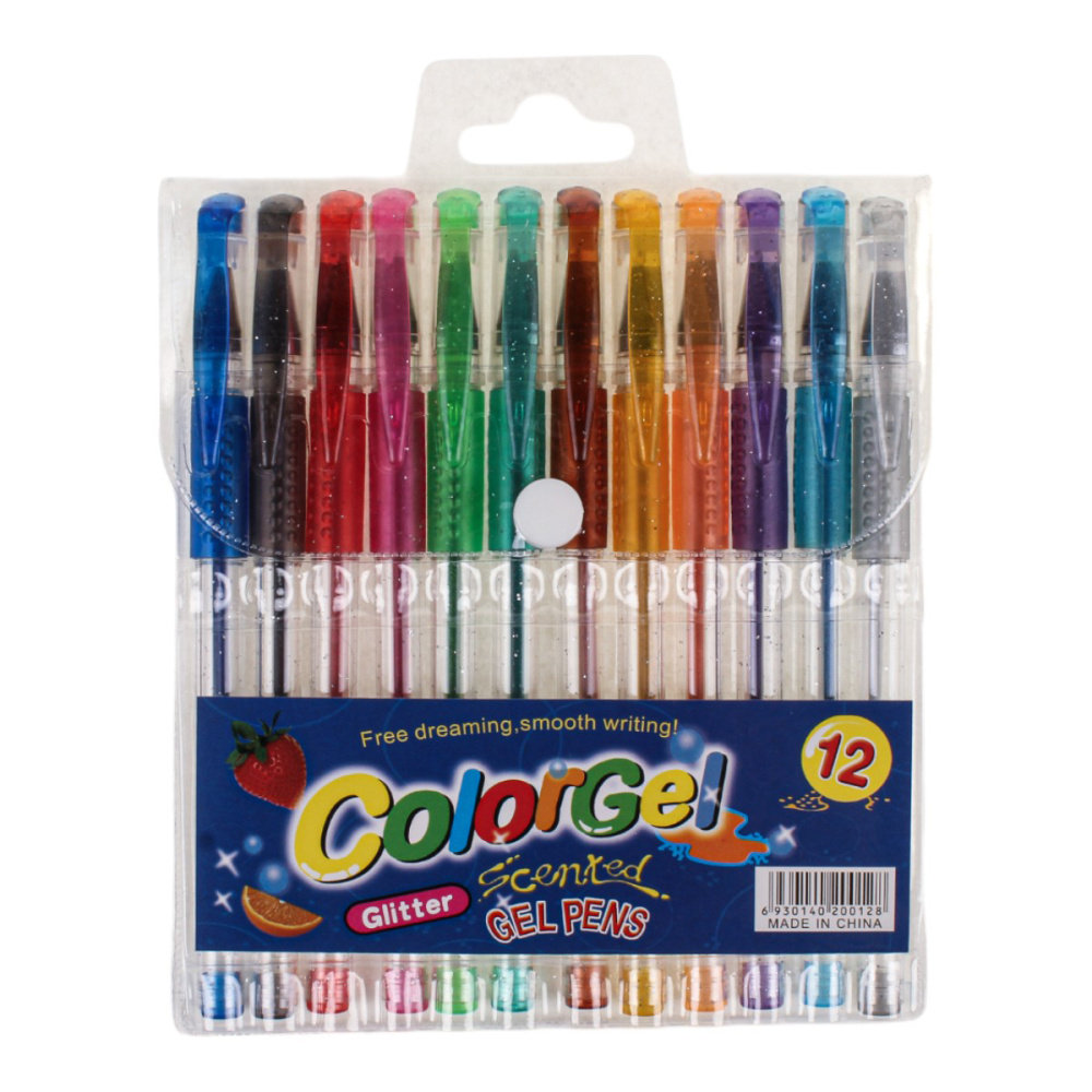 Набор цветных гелевых ручек с ароматом, 12 цветов, в ПВХ пенале