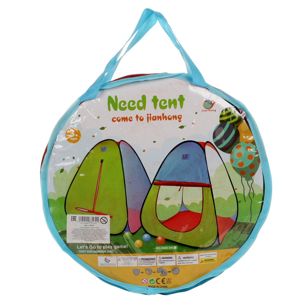 , где он сможет расширять свою фантазию и проводить время с удовольствием. Она выполнена в ярком дизайне, который привлечет внимание малыша и создаёт атмосферу праздника и радости. Палатка легко и быстро собирается, что позволяет установить его в любом удобном месте. Так же в комплекте идет сумка, в которую можно сложить детский домик.